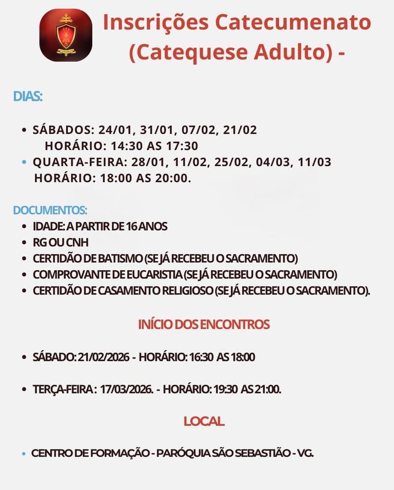 Participe do nosso encontro para catequese de adultos.